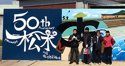 福山市と松永市の合併50周年記念を意味する絵と文字を描きました。
